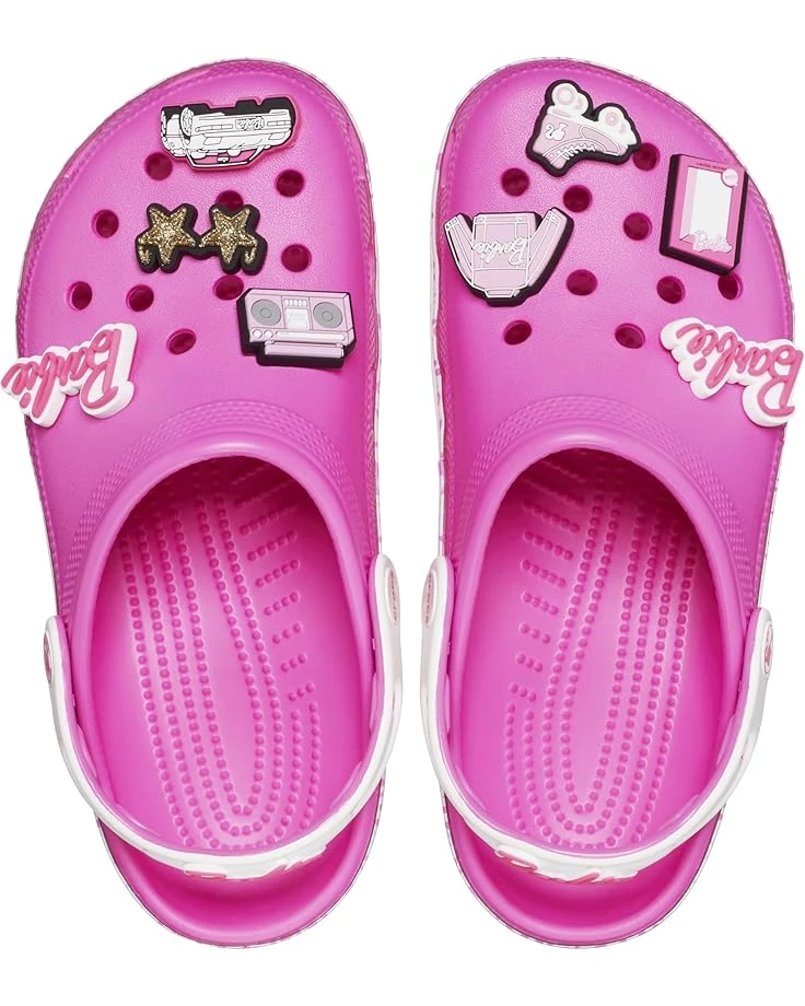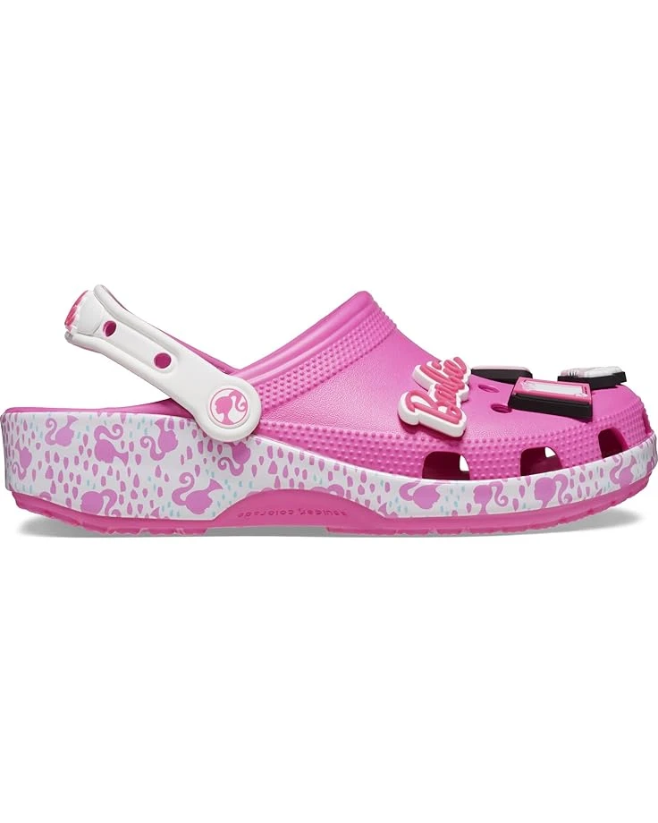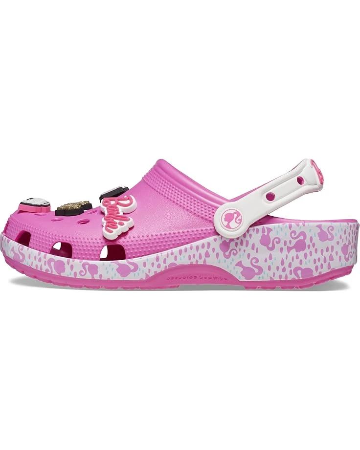 - Incredibly light and fun to wear, the Crocs™ Barbie Classic Clogs are water-friendly and buoyant. These come with a eva and thermoplastic polyurethane upper with ventilation ports that add breathability and help shed water and debris. Easy to clean and quick to dry, the clogs have a round toe shape and pivoting heel straps for a more secure fit These are exquisitely customized with Jibbitz™ charms. The thermoplastic eva lining, footbed, and midsole allow 360-degree comfort throughout the day.
