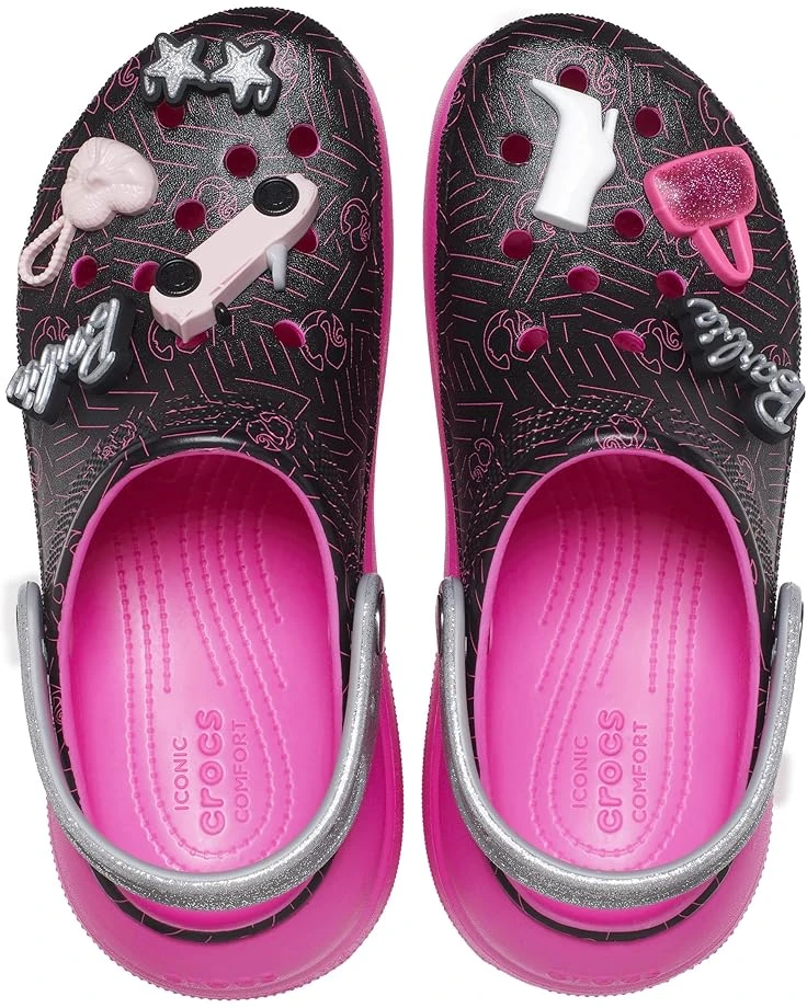 - This Crocs® Barbie Crush Clog is designed for a comfortable and charming touch to the feet. Bold styling and added height with colorful spray dye treatment give a perfect match for every apparel. Customizable with Jibbitz™ charms this iconic Crocs Comfort™ is lightweight and flexible for 360-degree comfort.