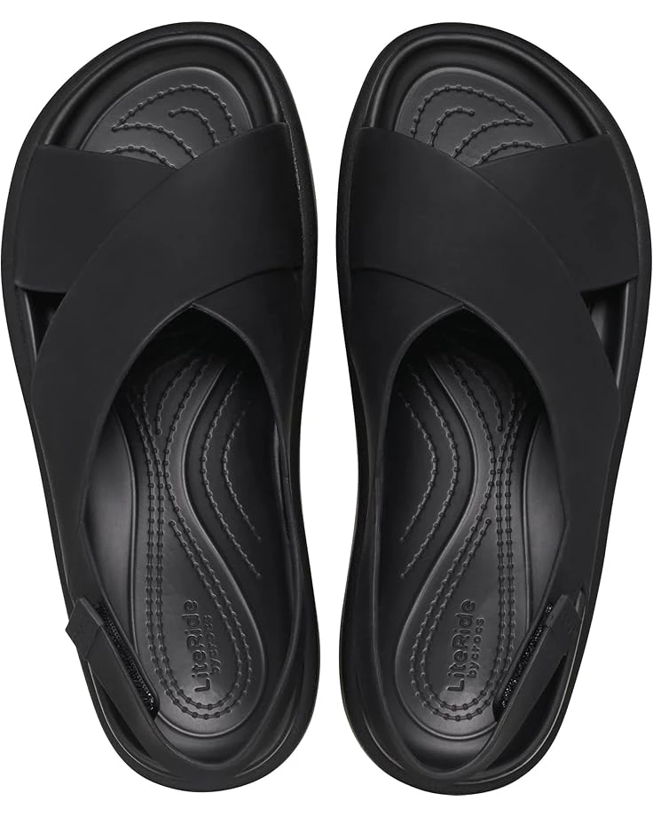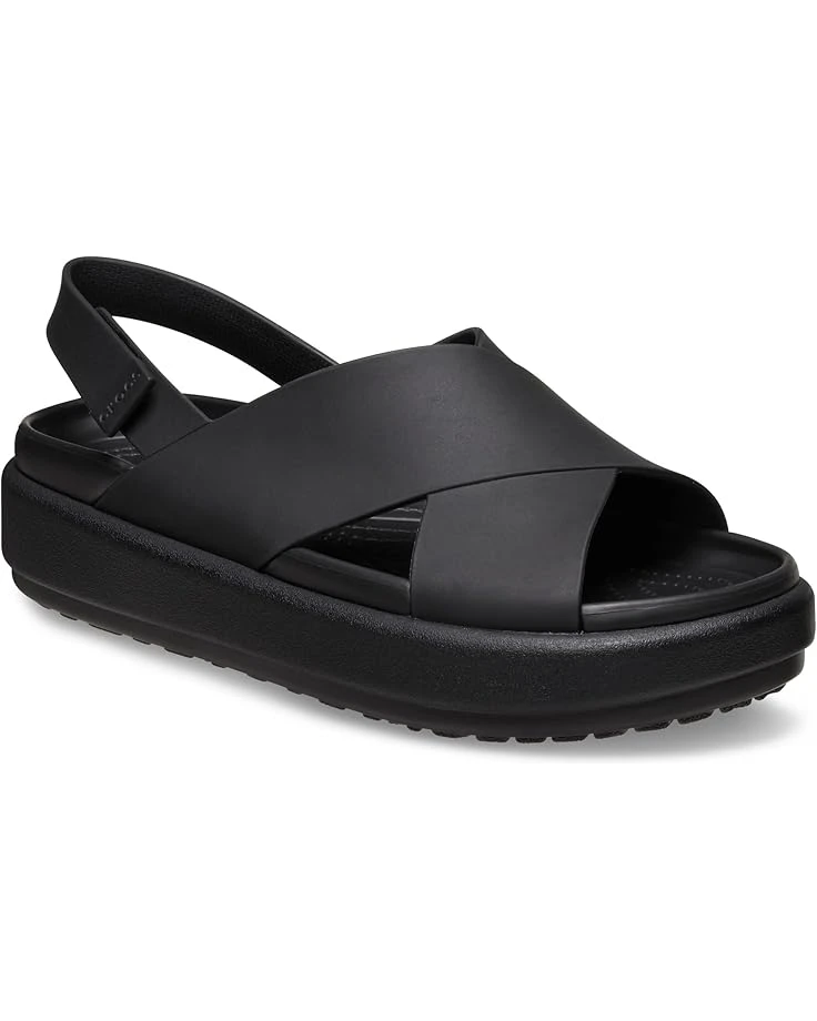 - Walk an extra mile effortlessly wearing the Crocs™ Brooklyn Luxe Cross Strap footwear. It features thermoplastic TPU upper, thermoplastic TPU lining, and TPU footbed. A slip-on style, open toe, and thermoplastic PU and rubber midsole offers cushioned comfort.