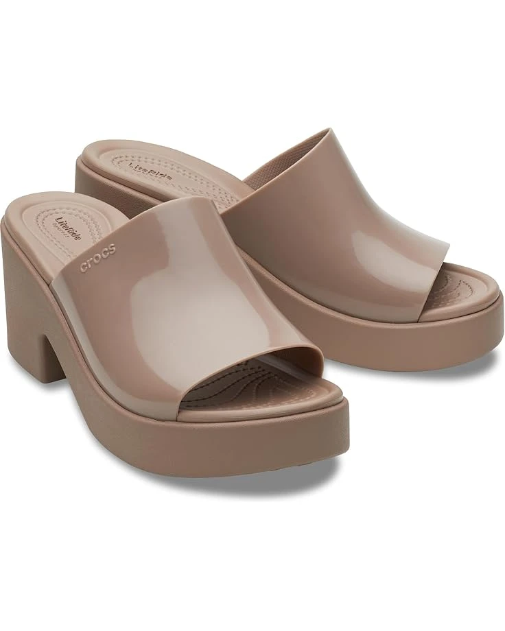 - Get ready to feel confident in both fashion and function donning the Crocs® Brooklyn Slide Heel. The block heels features sensationally comfortable LiteRide™ foam technology, revolutionary comfort technology allow you to move confidently, and slip-on construction.