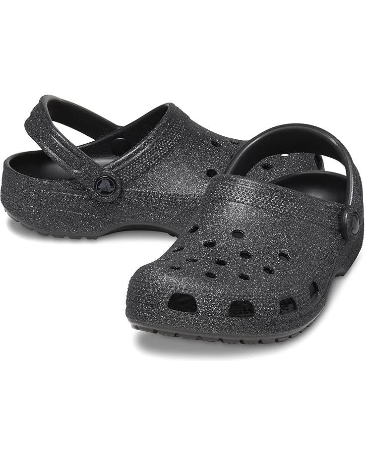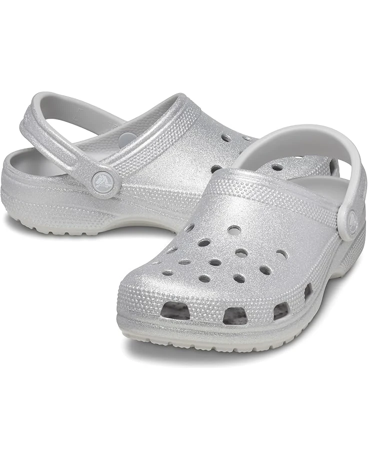 - Let the fun begin in the Crocs® Classic Clog – Glitter. Crosliteâ„¢ uppers are available in a variety of colors in patterns in a slip-on design with an adjustable heel strap and ventilation ports for breathability.