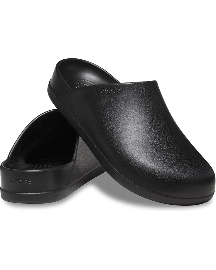 - Featuring subtle texture on the upper to give them the look of genuine, full-grain leather, the Crocs™ Dylan Clogs are the perfect footwear choice for everyday wear. The slip-on style of these clogs offers easy on and off while the Iconic Crocs Comfort™ provides lightweight, flexible, and 360-degree comfort. Easy to clean and quick to dry, these slip-on clogs are perfect to match your casual and dressy looks. The single-piece molded Croslite™ construction offers long-term durability. Get ready for your outdoor trip by wearing these comfy and stylish clogs.