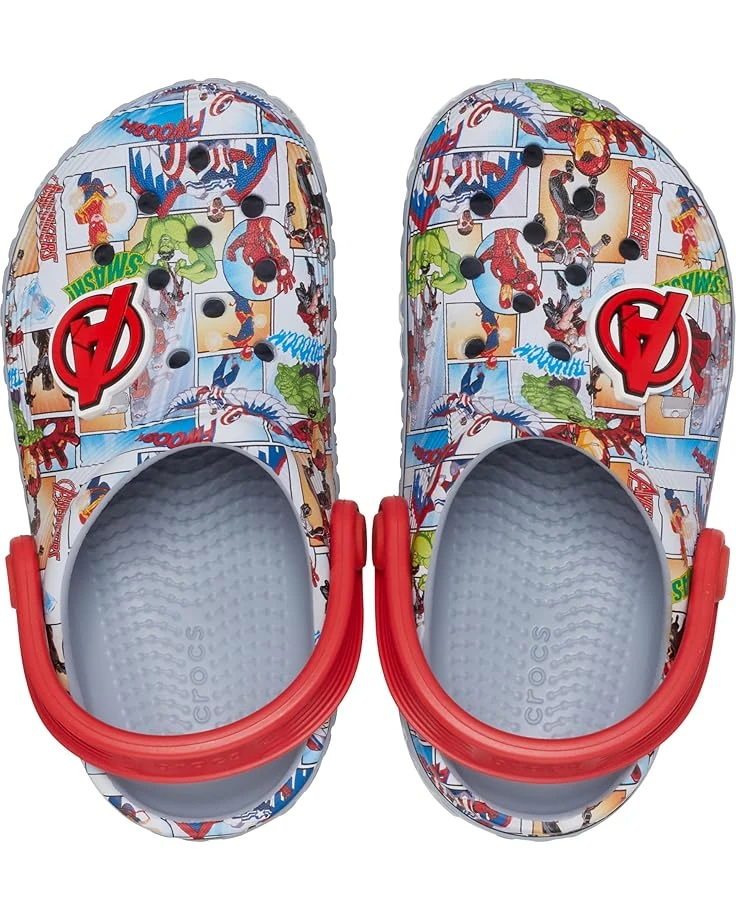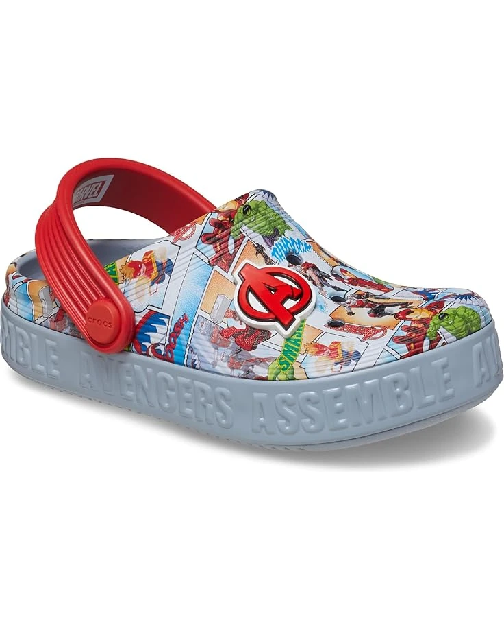 - Make a comfy Crocs statement wearing the Crocs™ Kids Avengers™ Off Court Clogs, they feature the lightweight, durable build you love with advanced ventilation for breathability and to help drain water and debris. Made with waterproof EVA upper and insole, these clogs are perfect for any activity. And with a pivoting heel strap, you can feel confident that they’ll stay securely on your child’s feet.