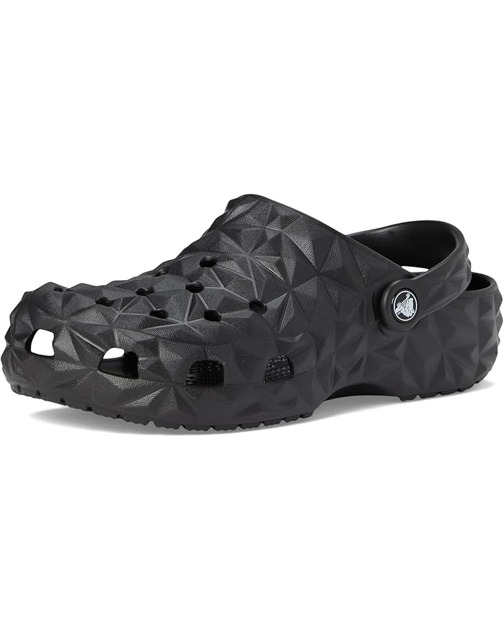 - The Crocs® Kids Classic Geometric Clog take your style statement up while maintaining the comfort with its geometric molded design and customized jibbitz™ charms iconic crocs comfort™. These feature a round toe shape and a pivoting heel straps for a more secure fit. The lightweight and flexible clogs have an allover patterned EVA upper and EVA croslite™ foam footbeds for lasting comfort.