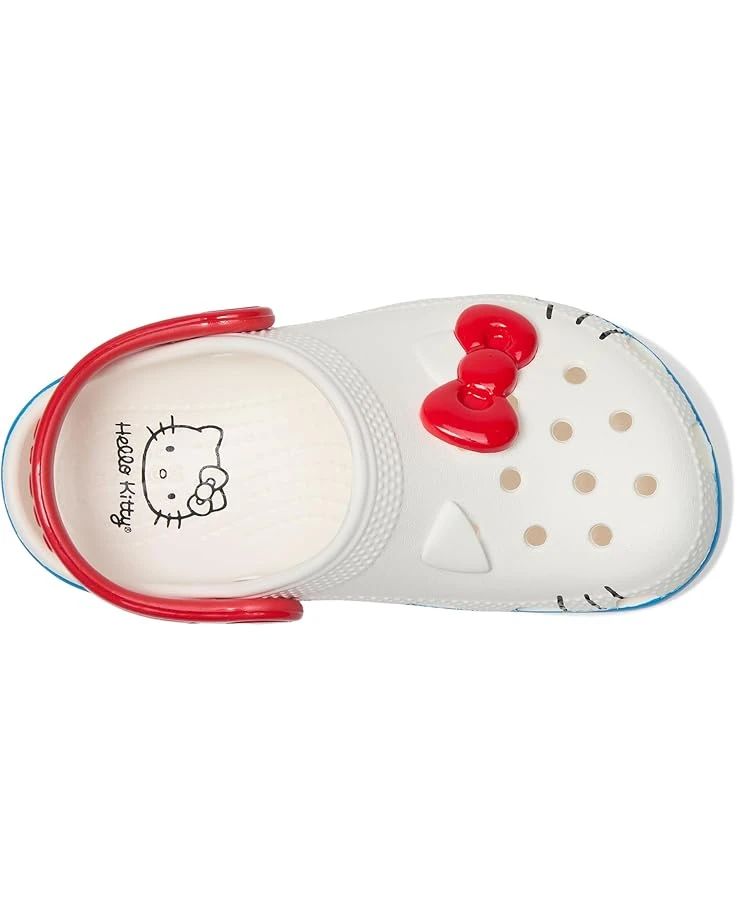 - Give your kids the joy of Hello Kitty with the unbeatable comfort of Crocs™ Kids Hello Kitty IAM Classic Clog. Designed for your little ones, these clogs are not only easy to slip on and off but also feature pivoting heel straps for a secure fit. Crafted from durable thermoplastic EVA lining and midsole, these clogs offer iconic Crocs comfort, ensuring lightweight, flexible, 360-degree comfort for all-day play. The all-over Hello Kitty graphic and included Jibbitz charm adds an extra dash of fun, making these a must-have for your little princesses.