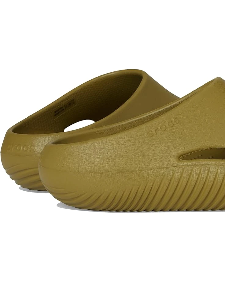 - Stay relaxed all day long and experiene a comfortable fit with a trendy design wearing Crocs™ Mellow Recovery Clog. These are crafted with an innovative blend of soft LiteRide™ foam that lets your feet melt into the footbeds and a thermoplastic EVA upper. The clog is designed with a round toe shape and an easy slip-on style.