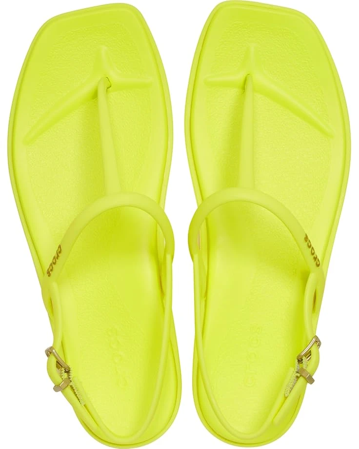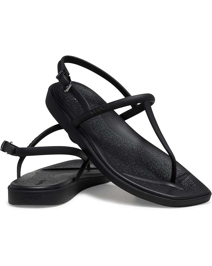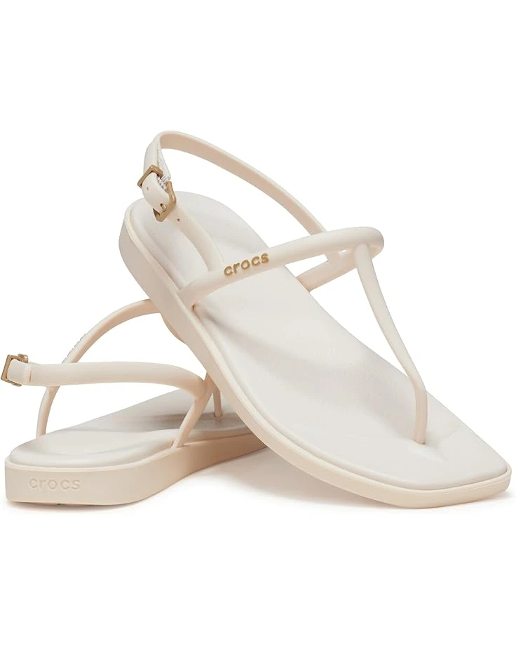- Style these versatile, elegant and summery Crocs™ Miami Thong Sandal for a relaxing walk on the beach. These square toe lightweight flats are incredibly light and easy to wear with stylish asymmetrical straps made of soft, flexible TPU material. The Croslite Foam offers an iconic crocs comfort that is perfect for relaxing at the beach or walking around town. Made from TPU upper, EVA footbed and outsole.