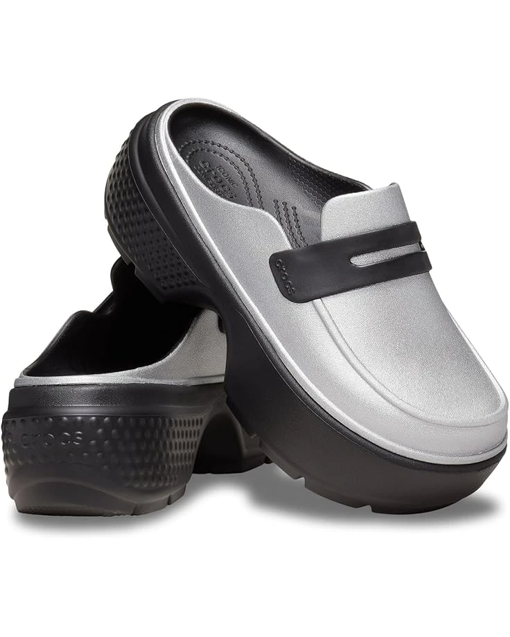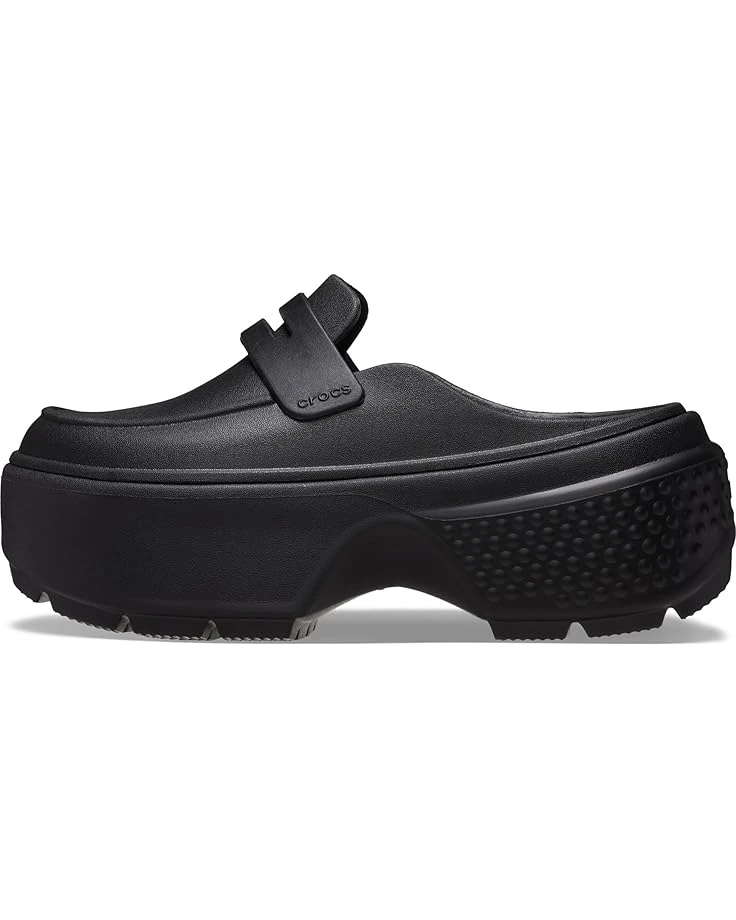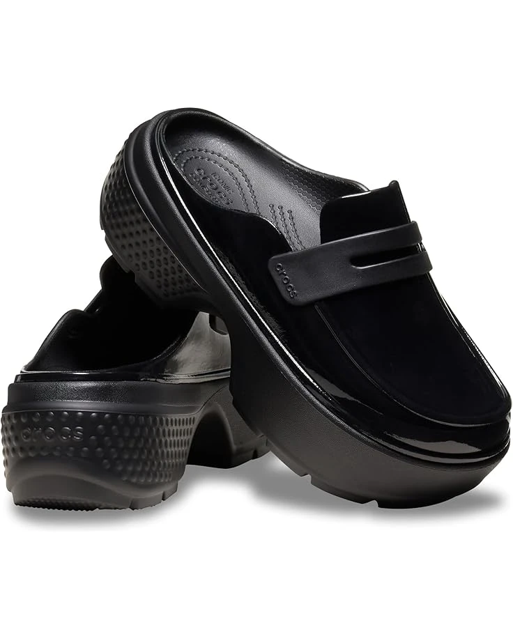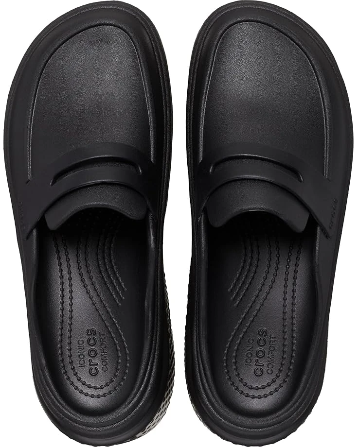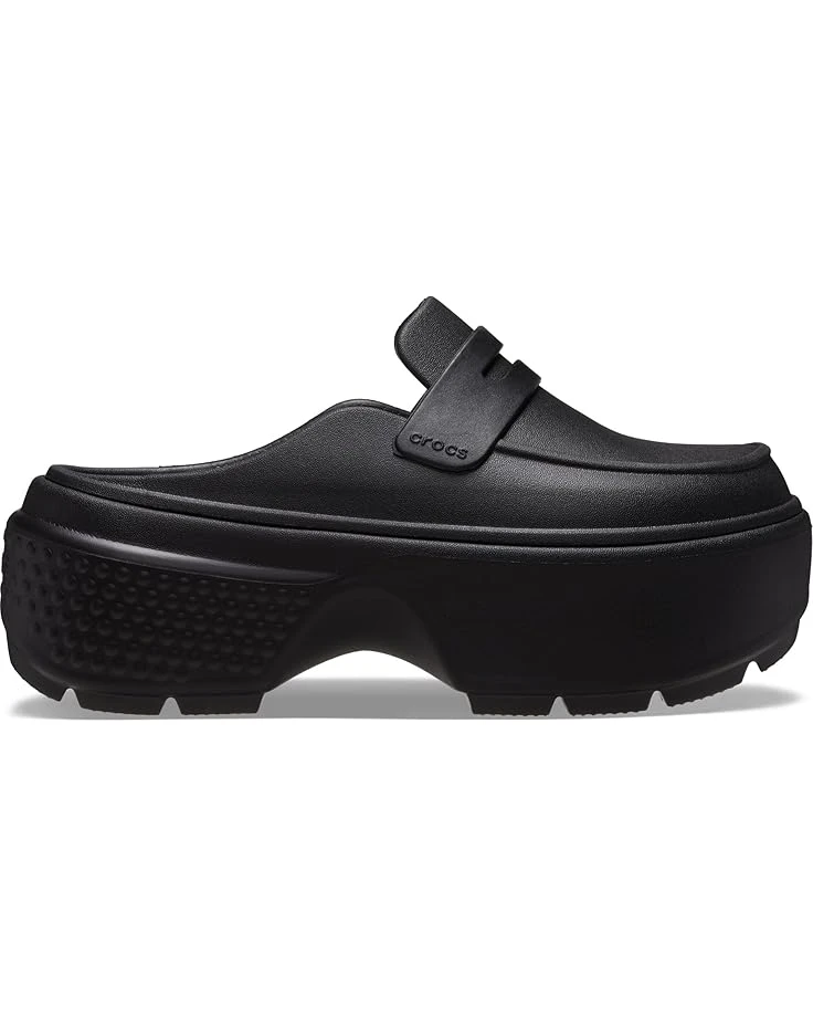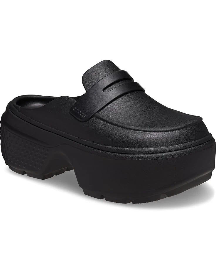 - Tread heavily and let the ground know who’s the boss wearing the Crocs™ Stomp Loafers. These shoes feature a stylish, exaggerated EVA outsole that is excessively chunky and daring while still feeling light on your feet. The contoured sidewall EVA upper of these loafers features a slip-on design for easy on and off. With dramatic proportions that elevate their inherent boldness and all of the charms of personalization, these loafer shoes let you stomp to your eye-catching beat. The EVA insole and waterproof construction of these shoes keep your feet comfortable and dry. Add a touch of sophistication to your look wearing these penny loafers.