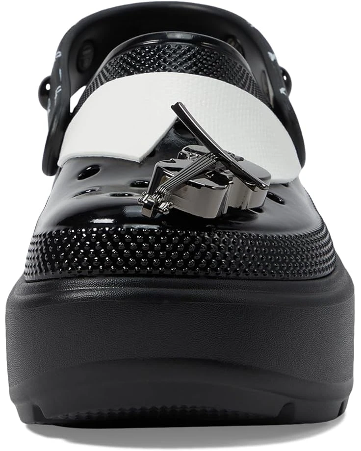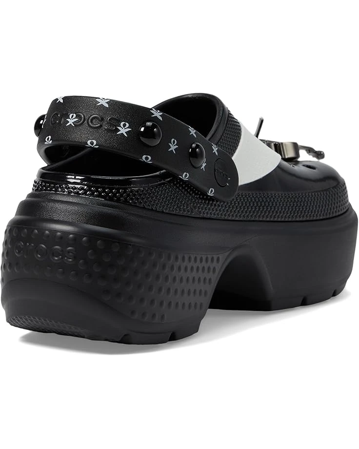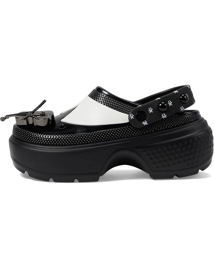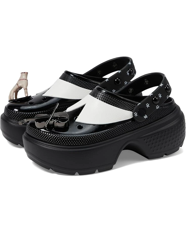 - Get ready to make a bold statement choosing the Crocsâ„¢ Wednesday Addams Stomp Clog! These waterproof clogs feature EVA upper and insole for ultimate comfort, along with stylish exaggerated soles that are chunky and daring. Despite their eye-catching design, these clogs still feel incredibly light on your feet, making them perfect for all-day wear.