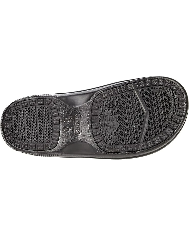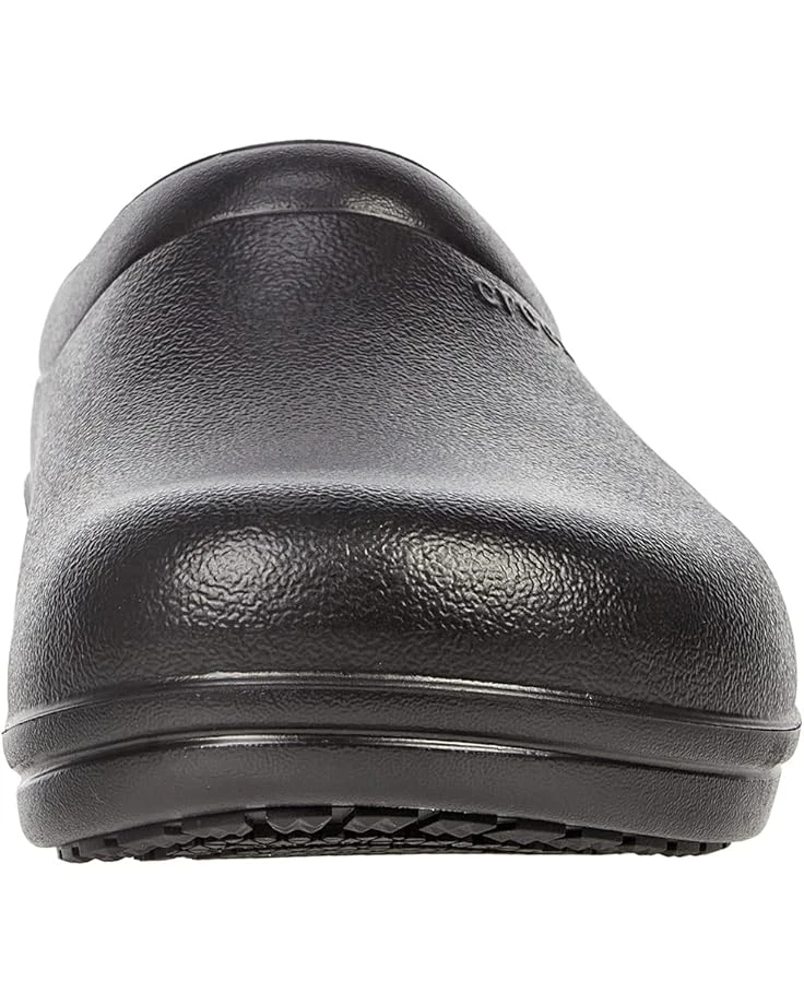- Crocs™ Work On The Clock Literide Slip-On. Calling all baristas, restaurant servers, and healthcare and service industry workers of every stripe. If you spend hours on your feet, you deserve a comfortable pair that works as hard (and looks as good) as you do. Think of these reinforced slip-ons as a caffeinated version of Crocs™ Classic Clogs, all geared up for the grind.