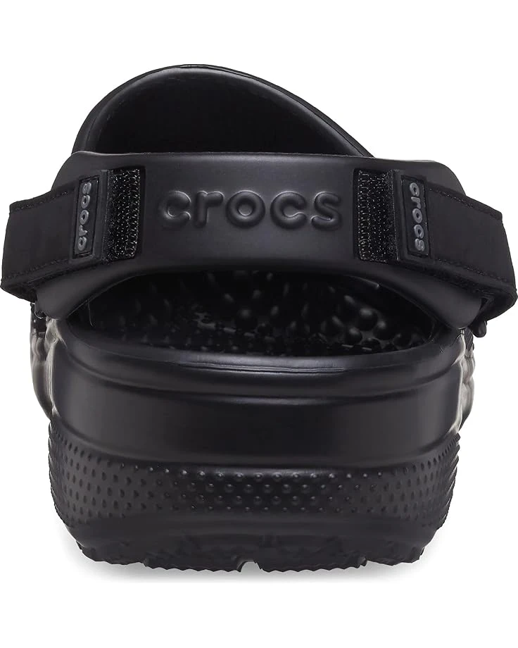 - Faux leather uppers and adjustable heel straps add a dose of ruggedness to the Men’s Classic Yukon Vista II Clogs. With a hook-and-loop closure system that also pivots forward, you’re free to choose between a hands-free slide or secured fit. Crosliteâ„¢ foam outsoles and footbeds can handle the outdoor elements while providing true comfort around the campfire, on the trail, or back home.
